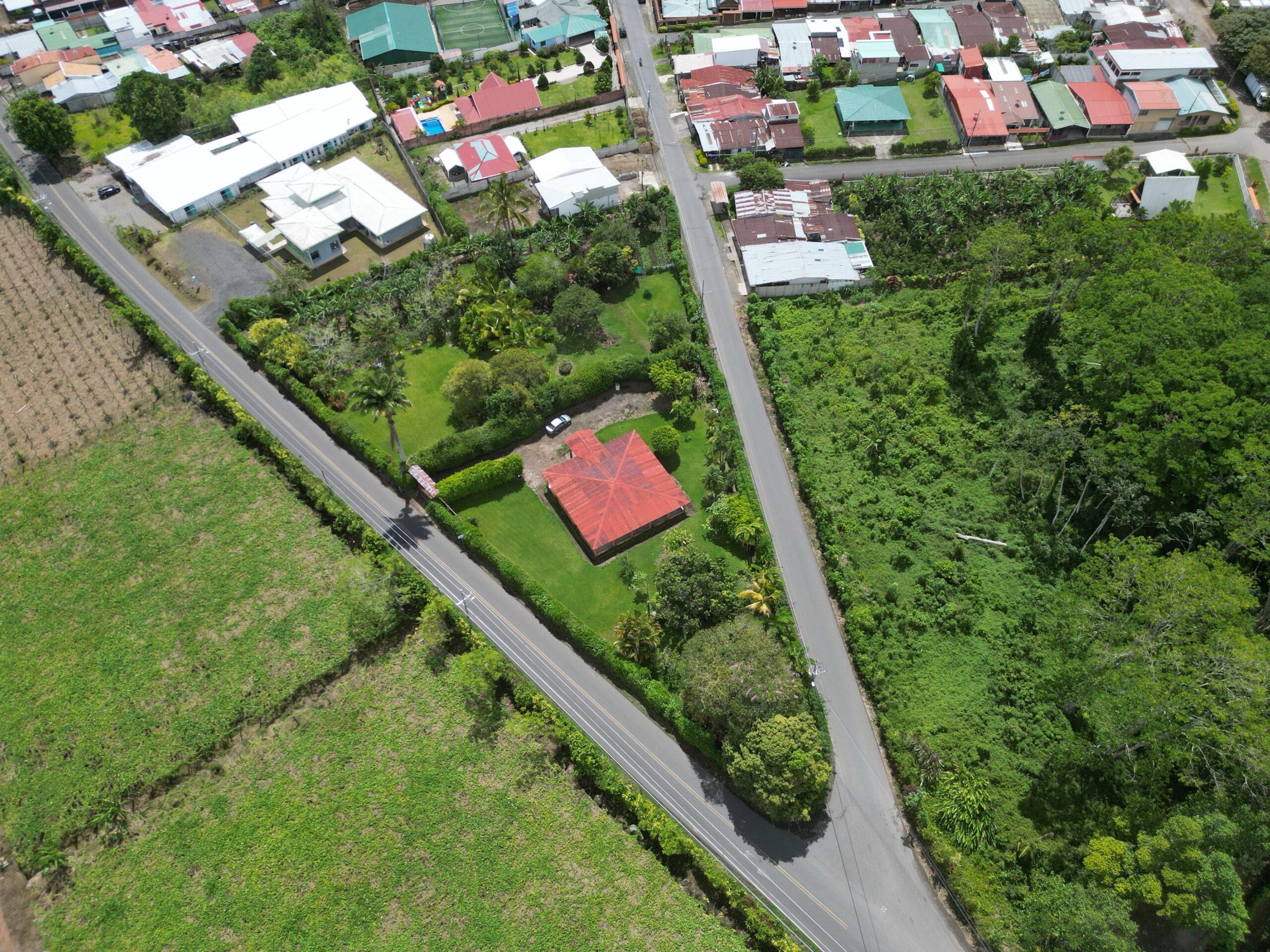 El terreno presenta una topografía completamente plana, lo que facilita la ejecución de proyectos sin complicaciones técnicas. Además, cuenta con dos frentes a calle pública, uno sobre ruta nacional y otro sobre ruta cantonal, lo que brinda múltiples accesos y una excelente distribución para proyectos inmobiliarios.